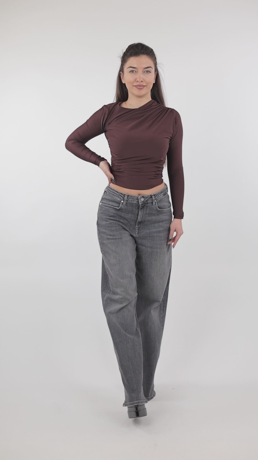 Bluza Ruched Crop Top eshte nje pjese e sofistikuar qe shfaq stil dhe personalitet
