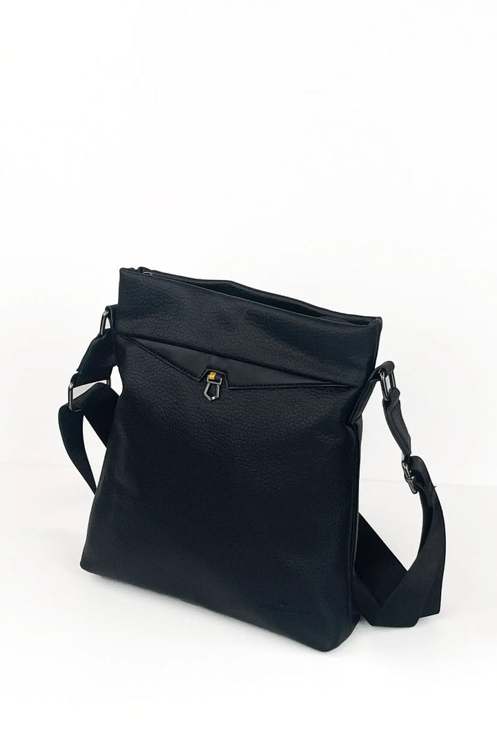 Kjo çante kompakte nga lekura 100% ofron hapesire ideale per sendet tuaja te perditshme. Dizajn modern me ngjyre te zeze, perfekte per meshkuj qe duan nje aksesore funksional dhe me stil. Bartja e lehte dhe komode e ben te pershtatshme per perdorim ditor - qofte per pune, udhetim apo aktivitete te lira.