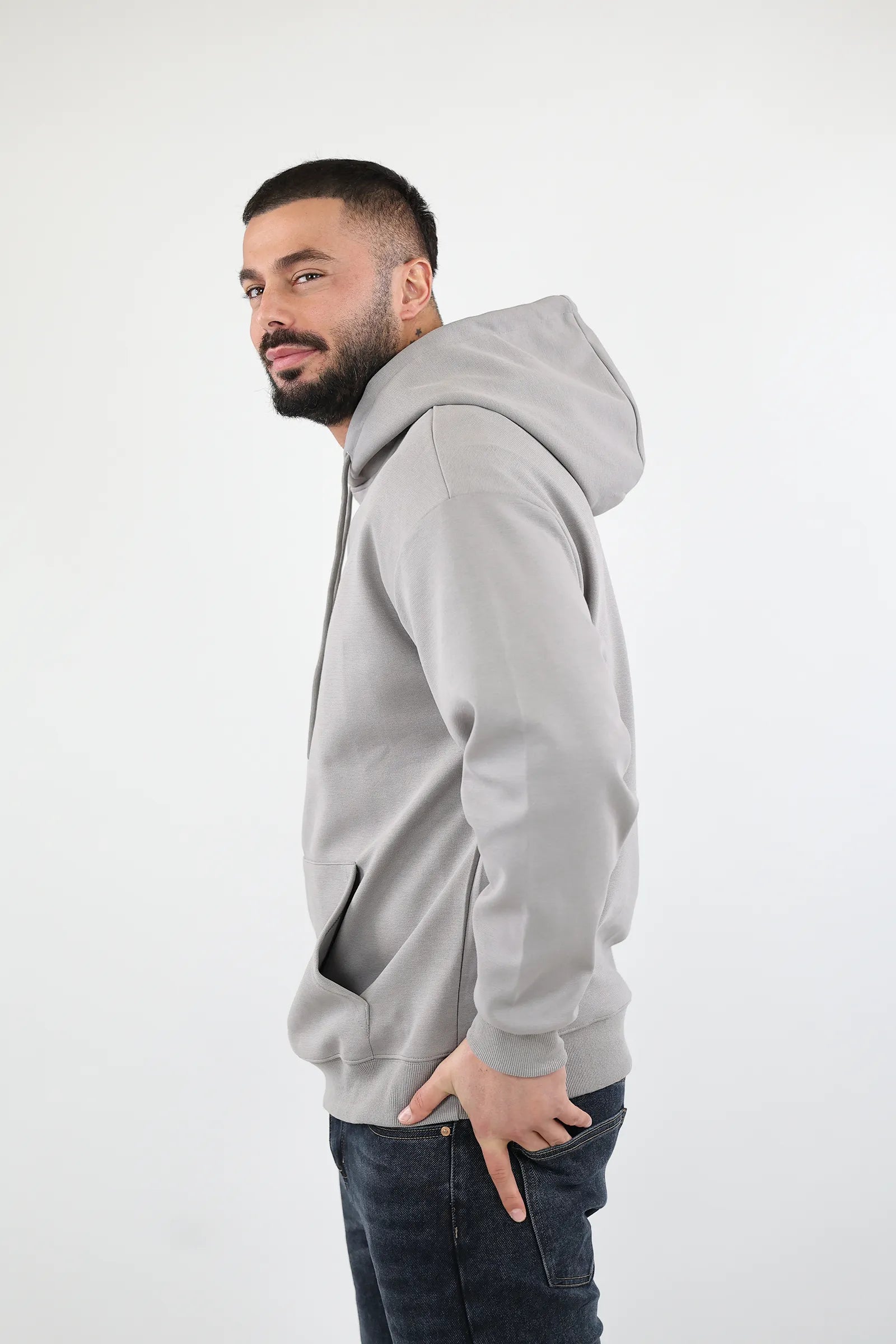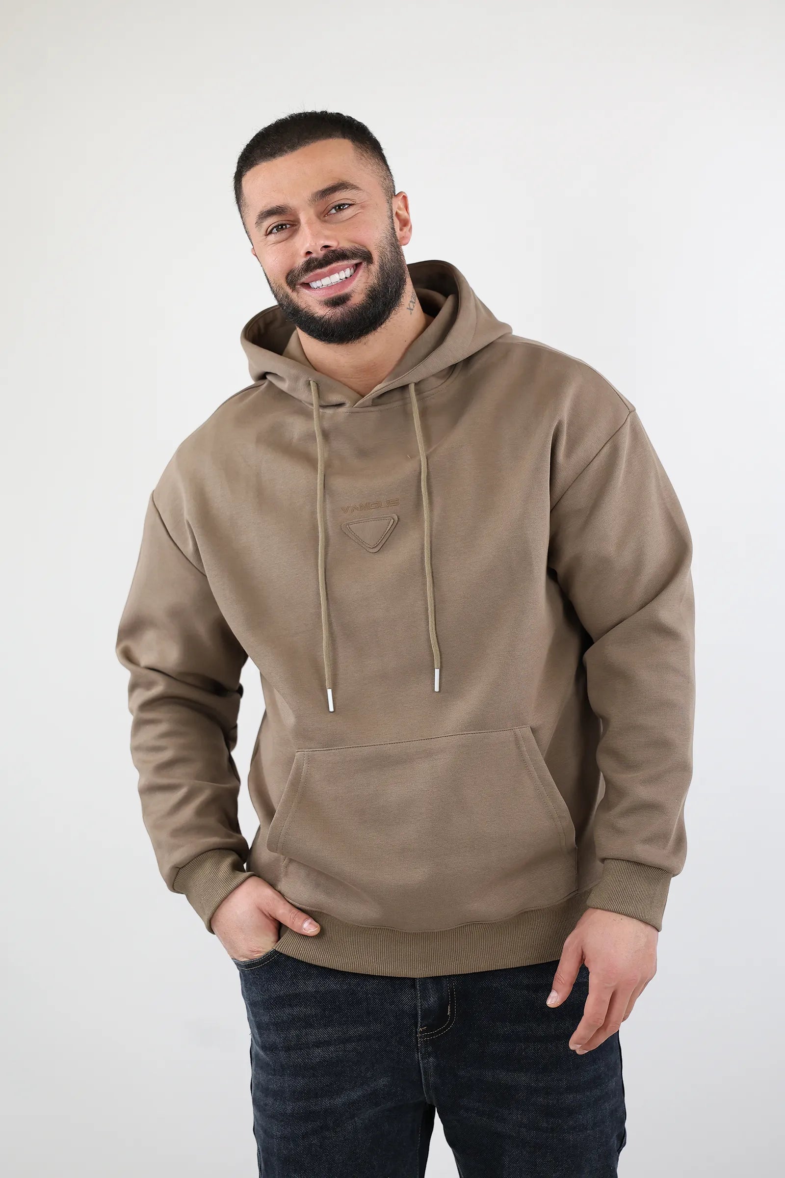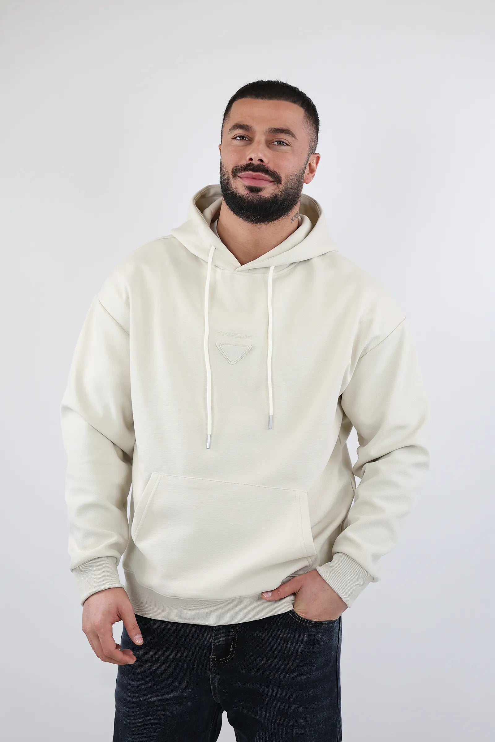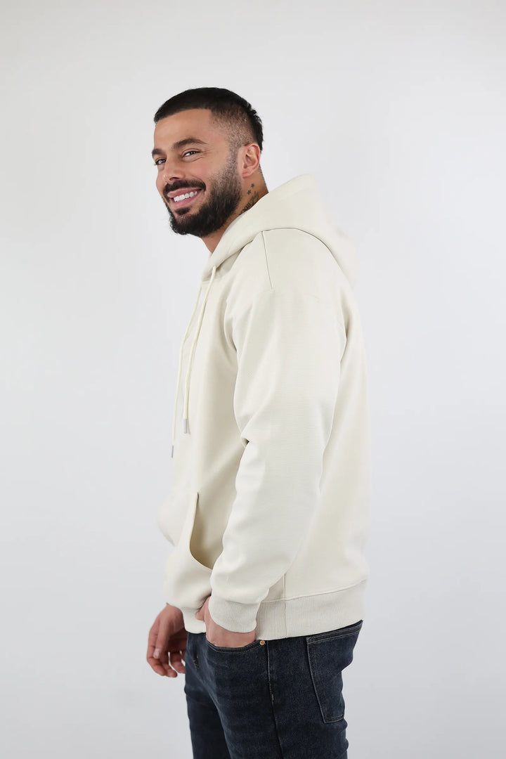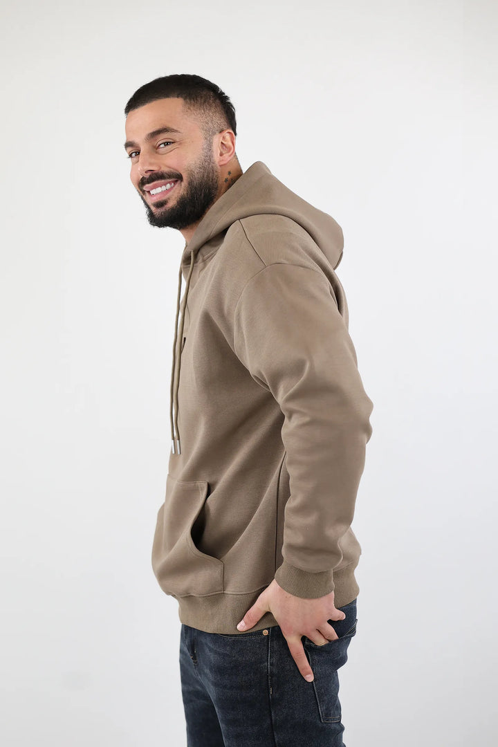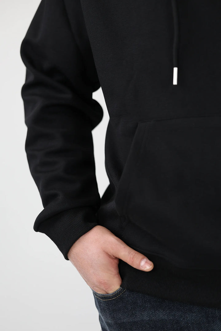 Modeli klasik me kapuç dhe xhep kangur, i kombinuar me logon minimaliste në pjesën e përparme, e bën ideal për veshje të përditshme apo për momente relaksi.