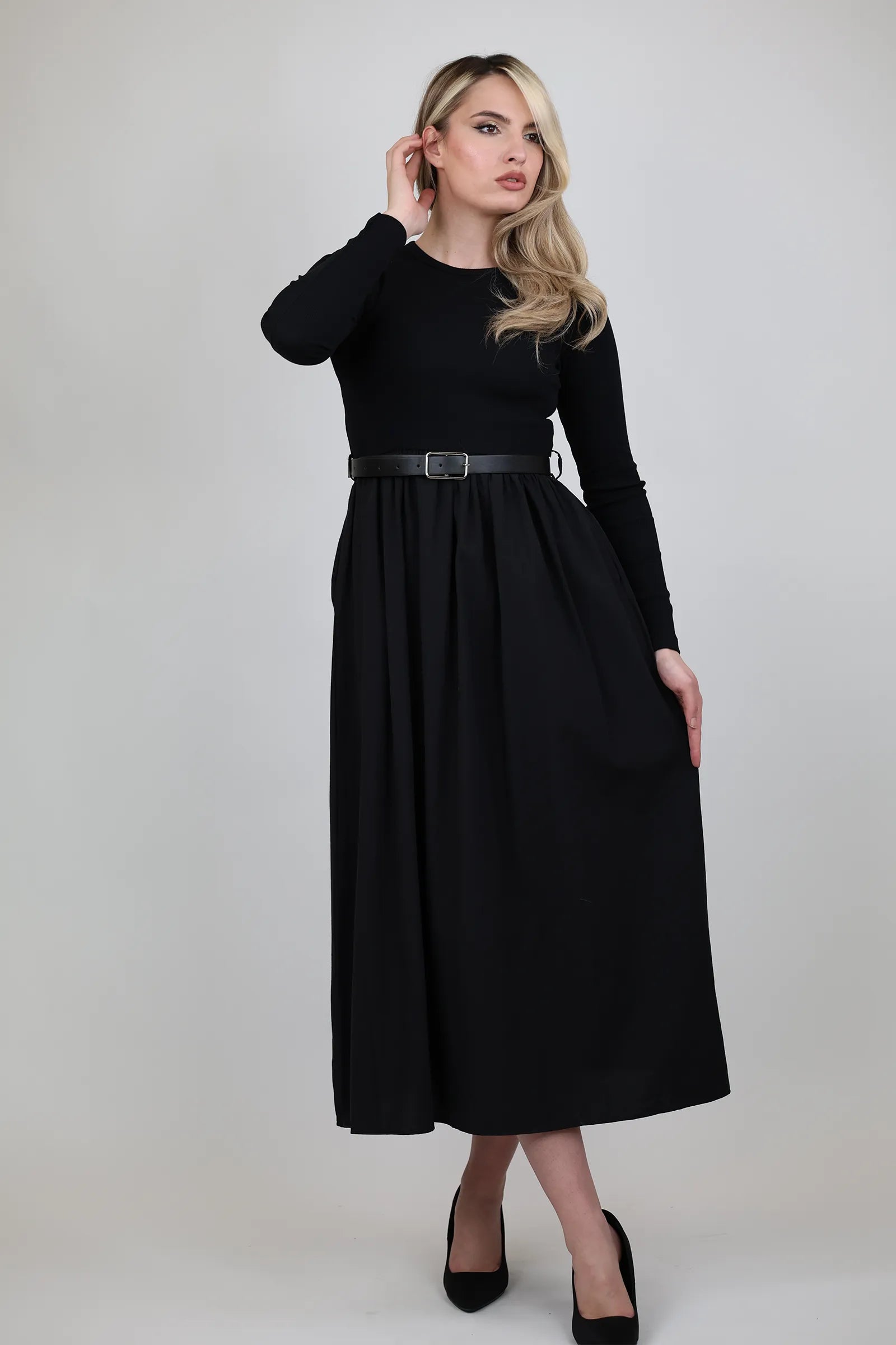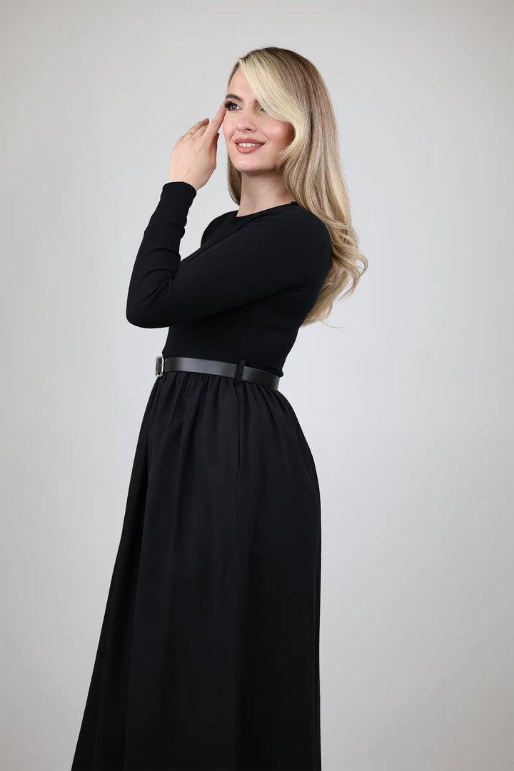 Fustan elegant qe kalon pa mundim nga zyra ne darkat e mbramjes per femra. Dizajn modern, cilesore premium, perfekt per cdo rast formal.