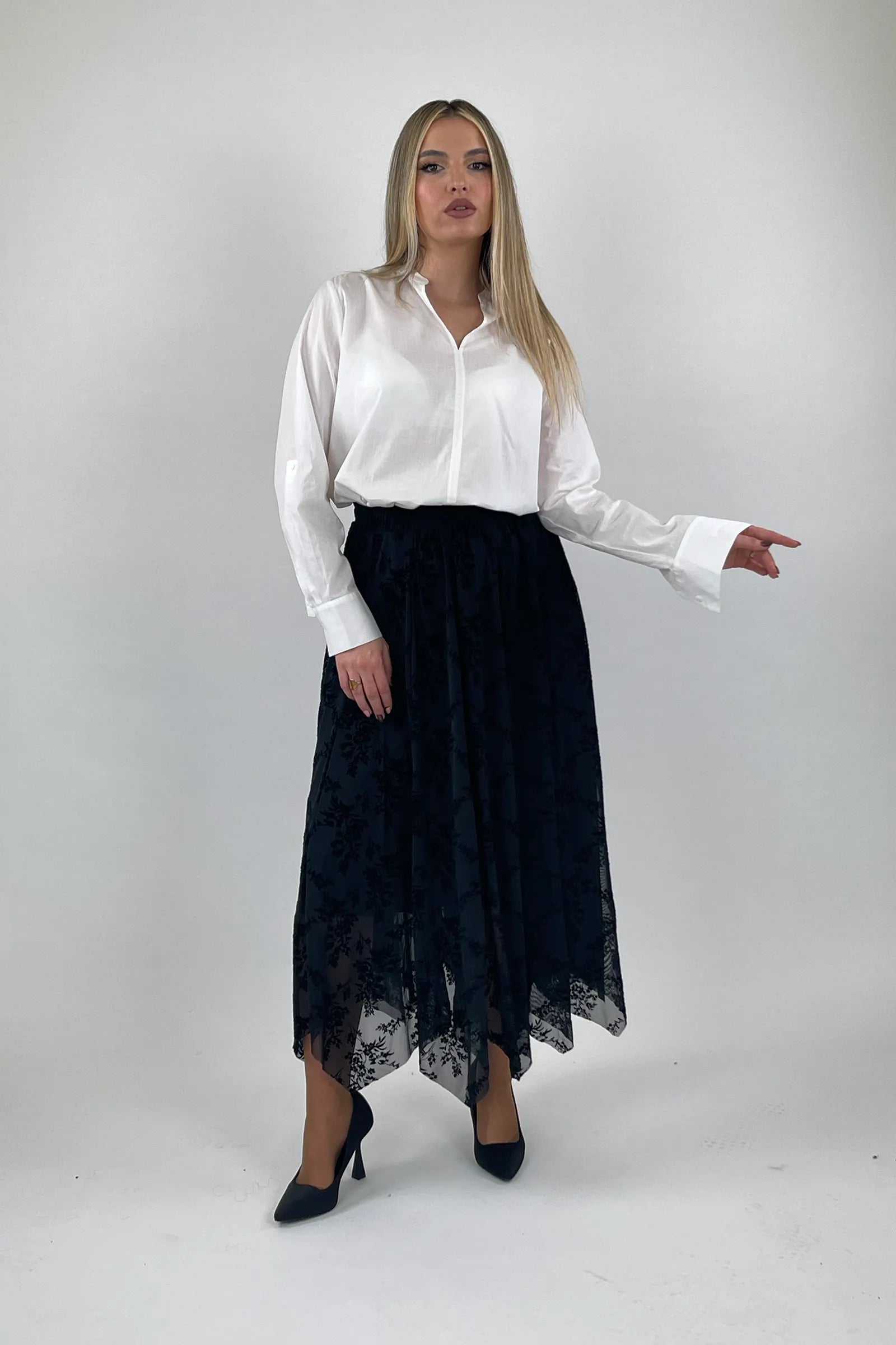 Dizajn elegant dhe i rafinuar, i pershtatshem per kombinime casual ose elegante. Materiali i bute ofron rehati gjate veshjes, ndersa detajet e lace i shtojne stil dhe sofistikim pamjes suaj. Një pjese bazike dhe chic ne garderobe.