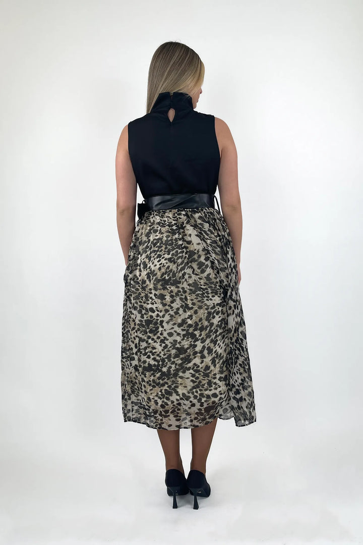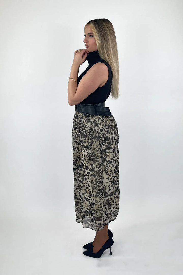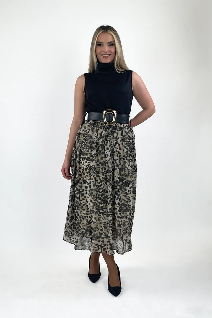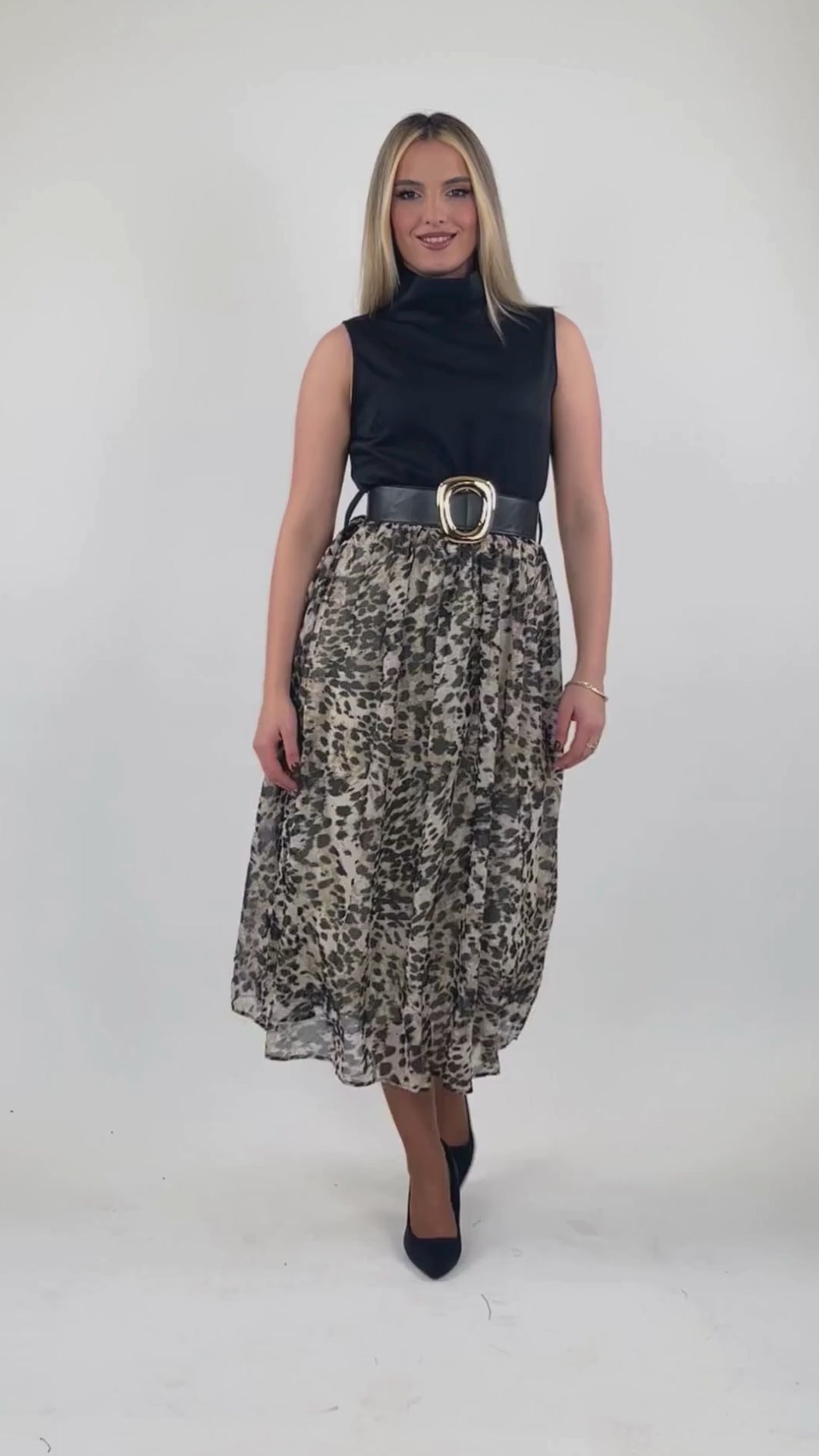 Fustan leopard me stil trendi dhe prerje te rafinuar, perfekt per femra qe duan te dallohen. Printi i vecante kombinohet bukur me aksesor minimal per nje look te forte dhe chic urban.