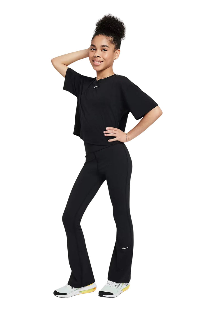 Hellanke nike one girl's dri-fit flared FZ5609-010 per femije, dizajn modern dhe i rehatshem per vajza aktive. Teknologjia Dri-FIT mban lekuren te thate.
