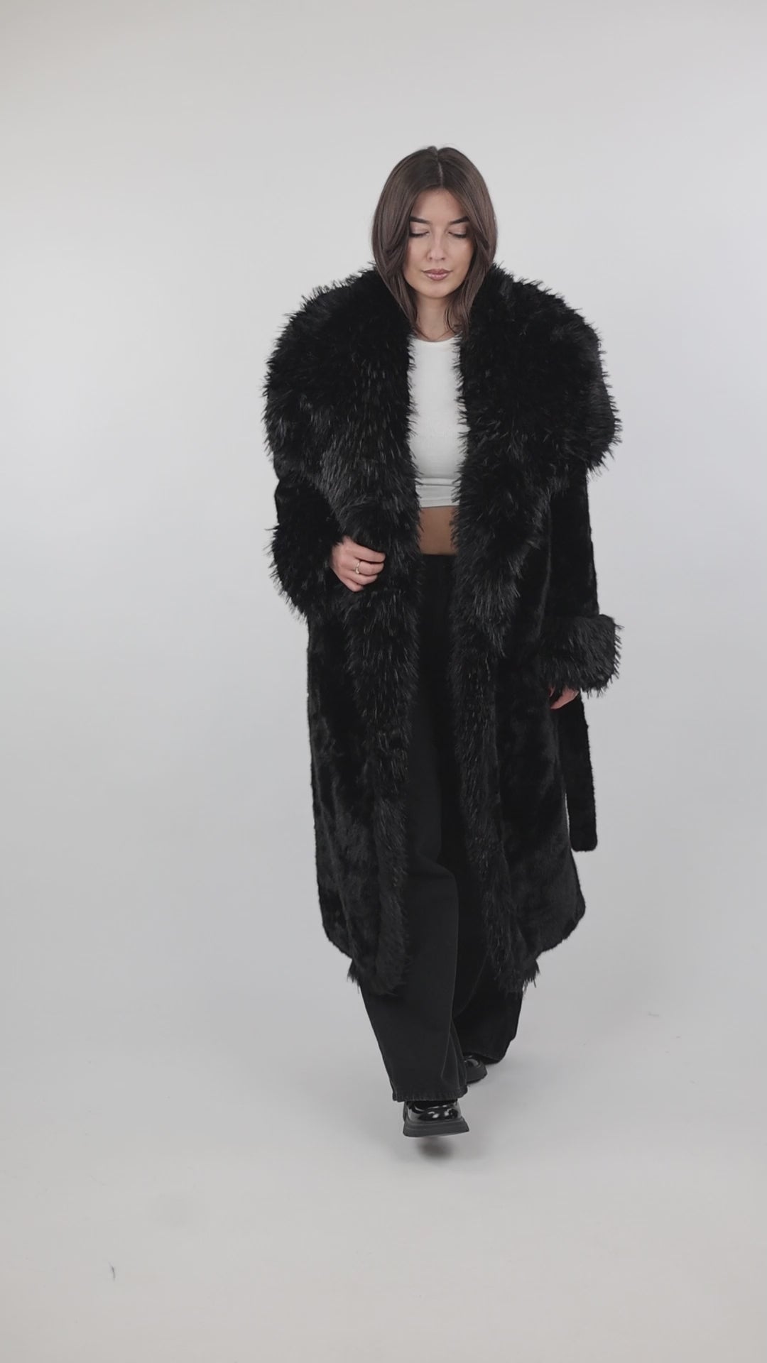 Jakne elegante maxi me prerje klasike qe ofron stil dhe ngrohtesi per sezonin e ftohte.