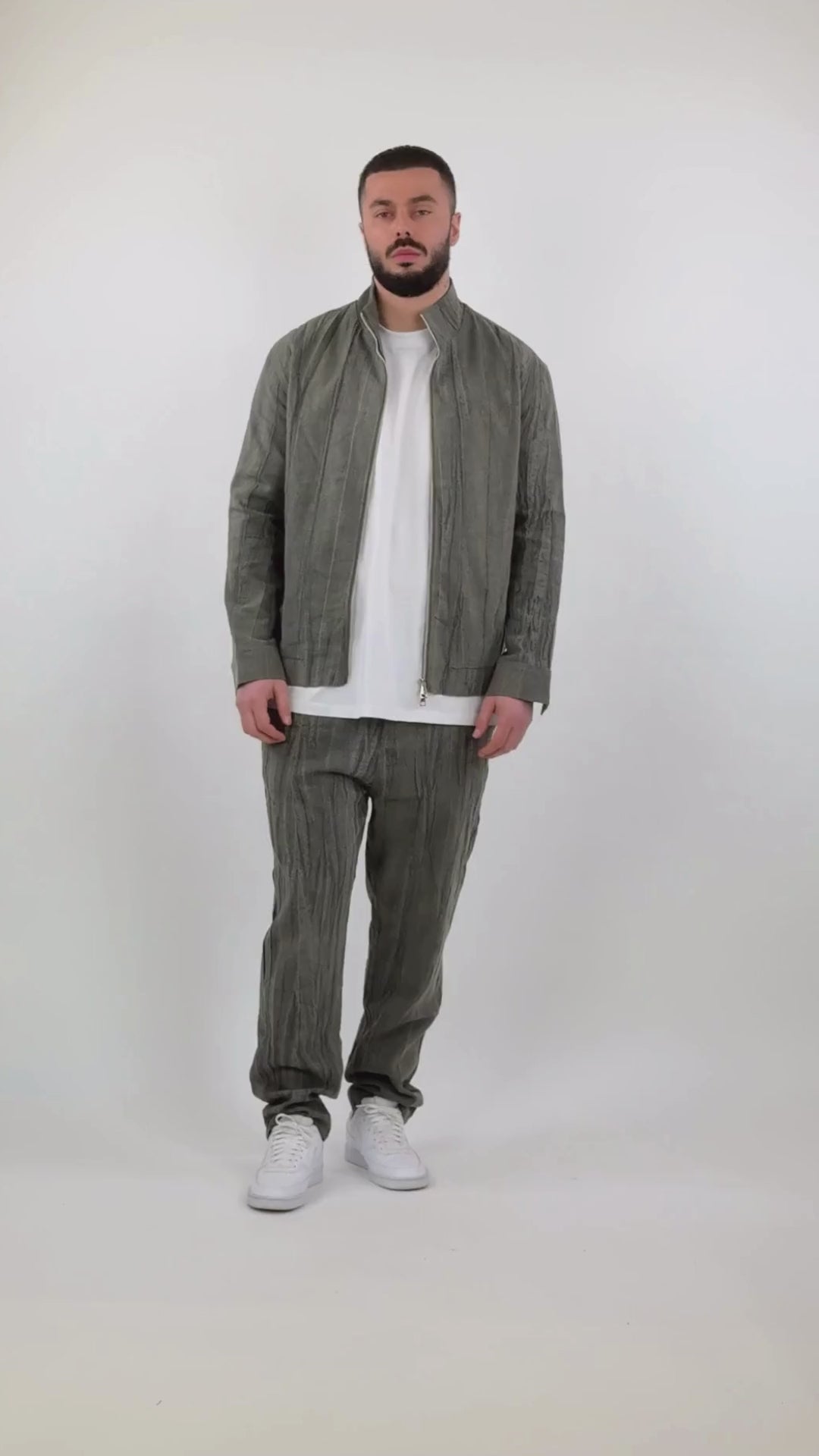 Jakne bomberi ne linine, e perpunuar me kujdes per stilin modern dhe komoditetin.