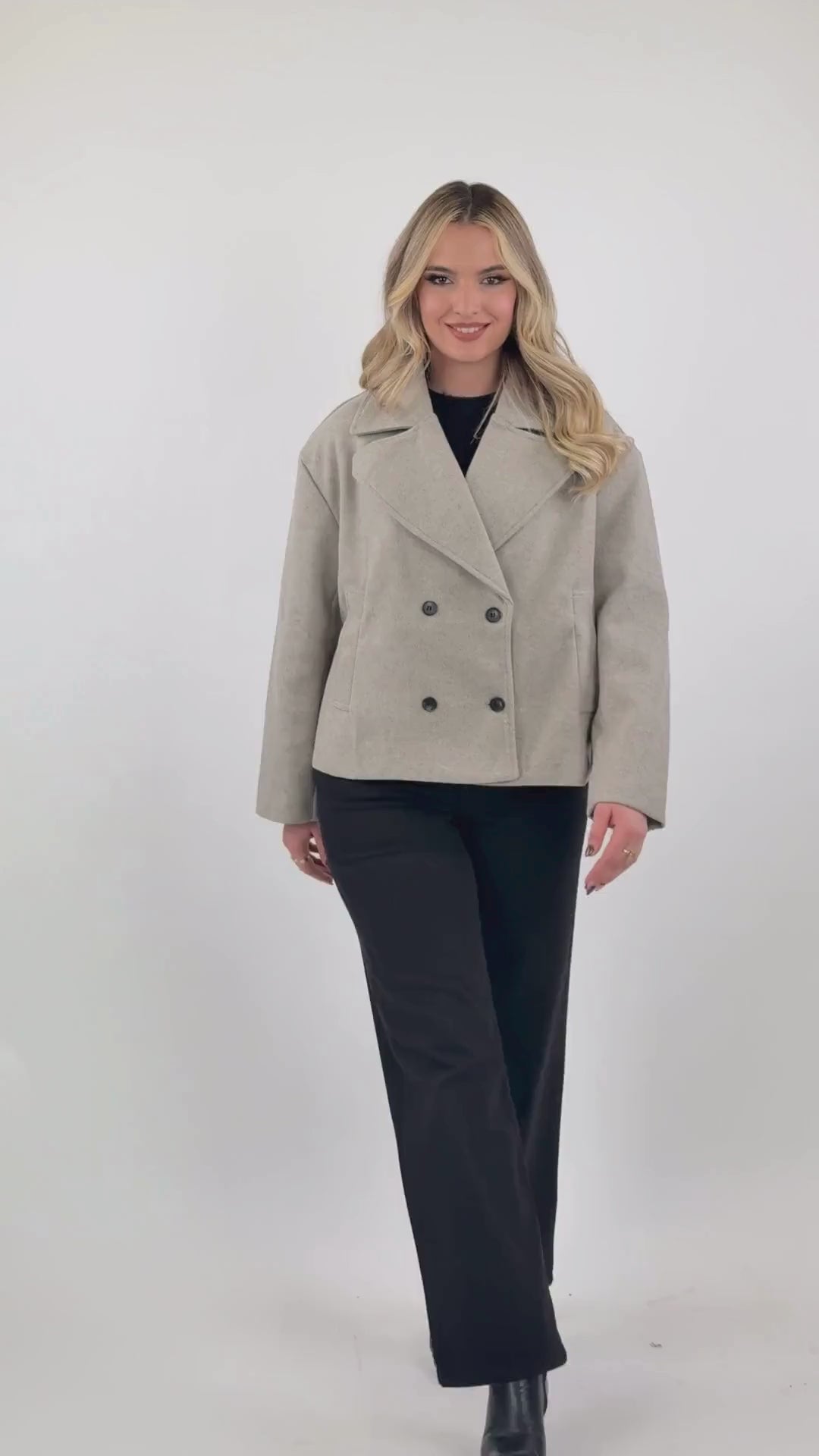 Pallto per femra klasik peacoat me prerje te persosur dhe detaje te rafinuara.