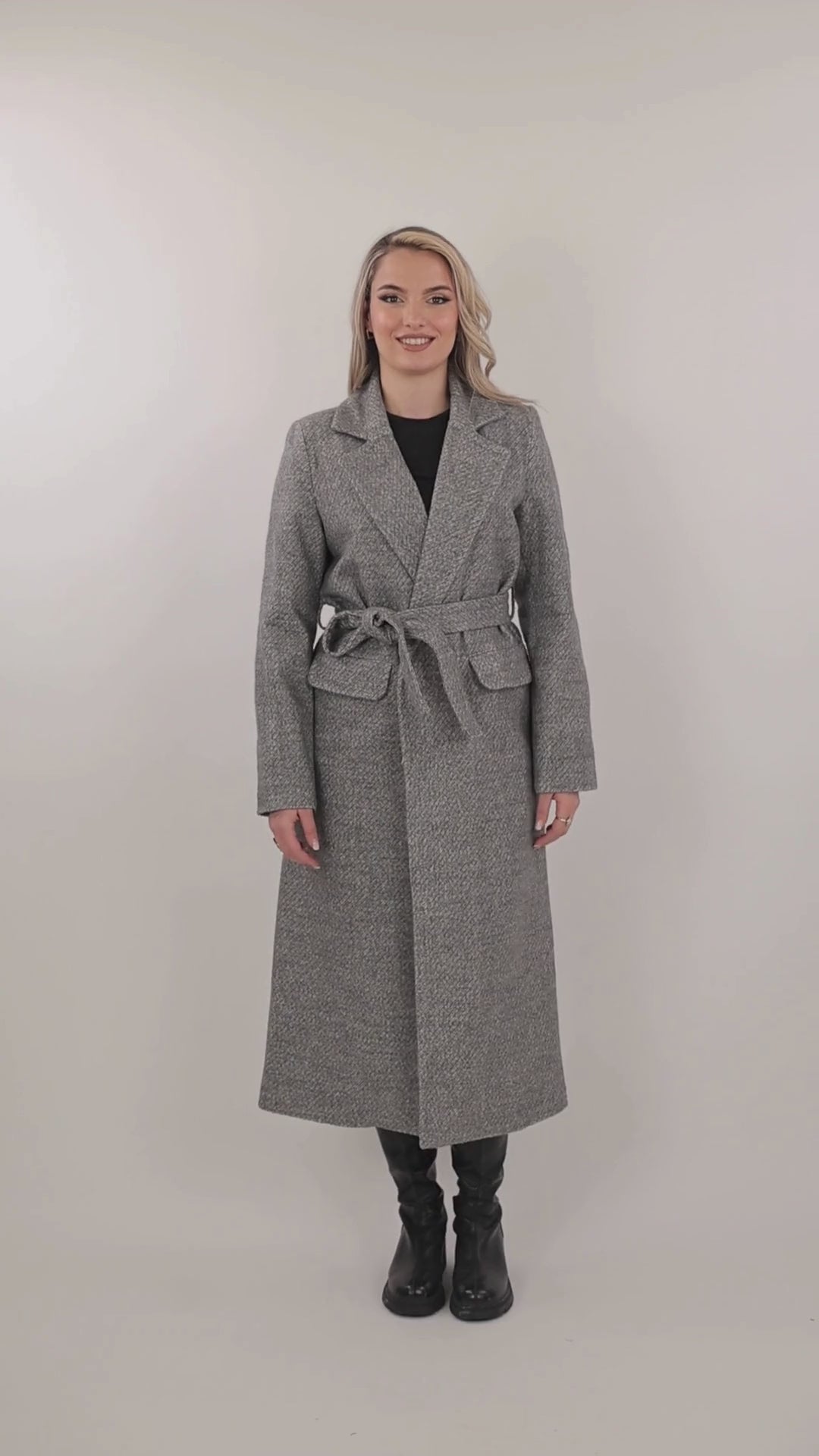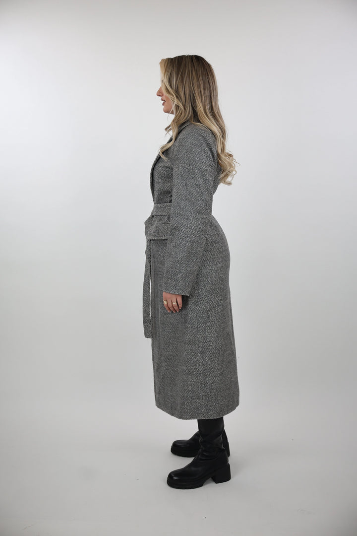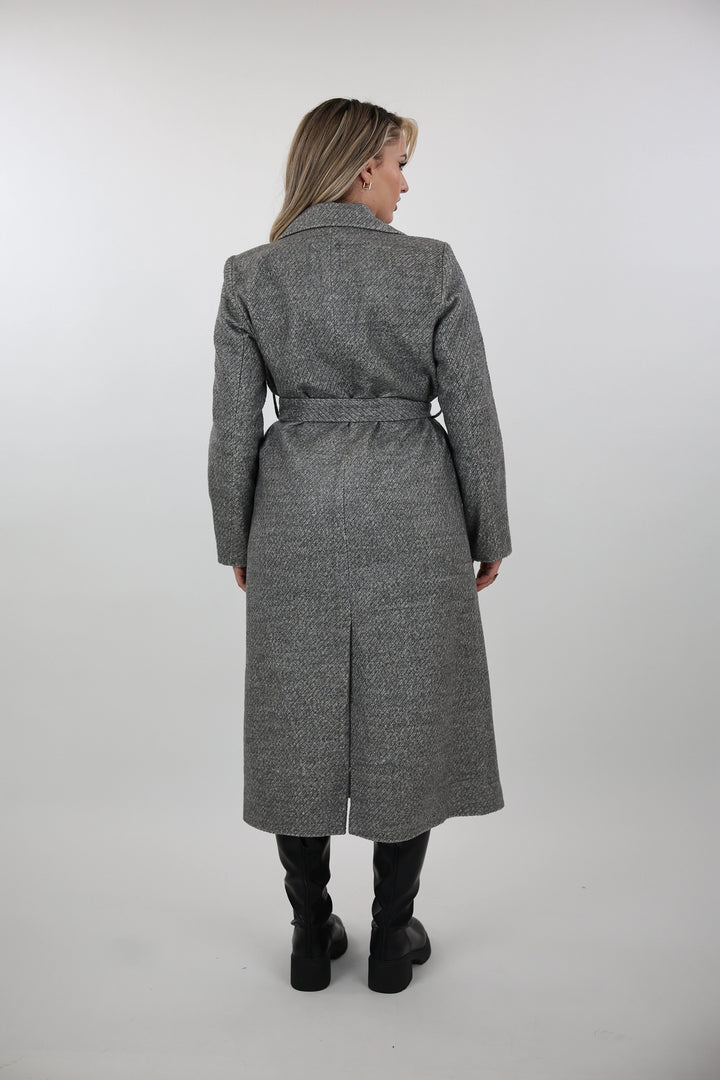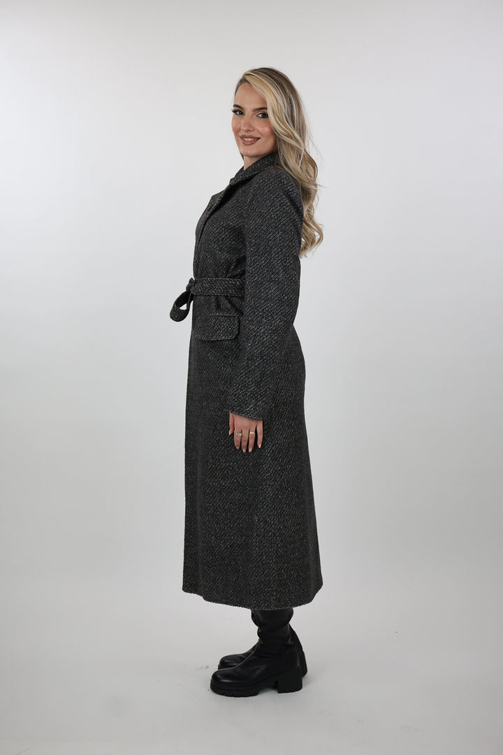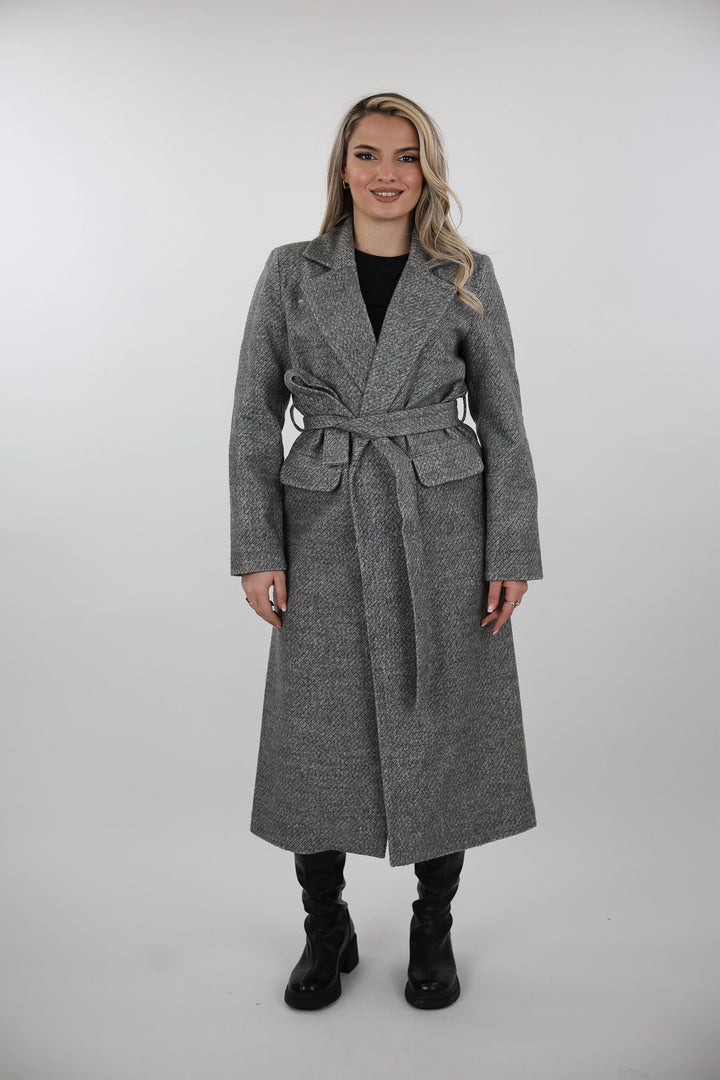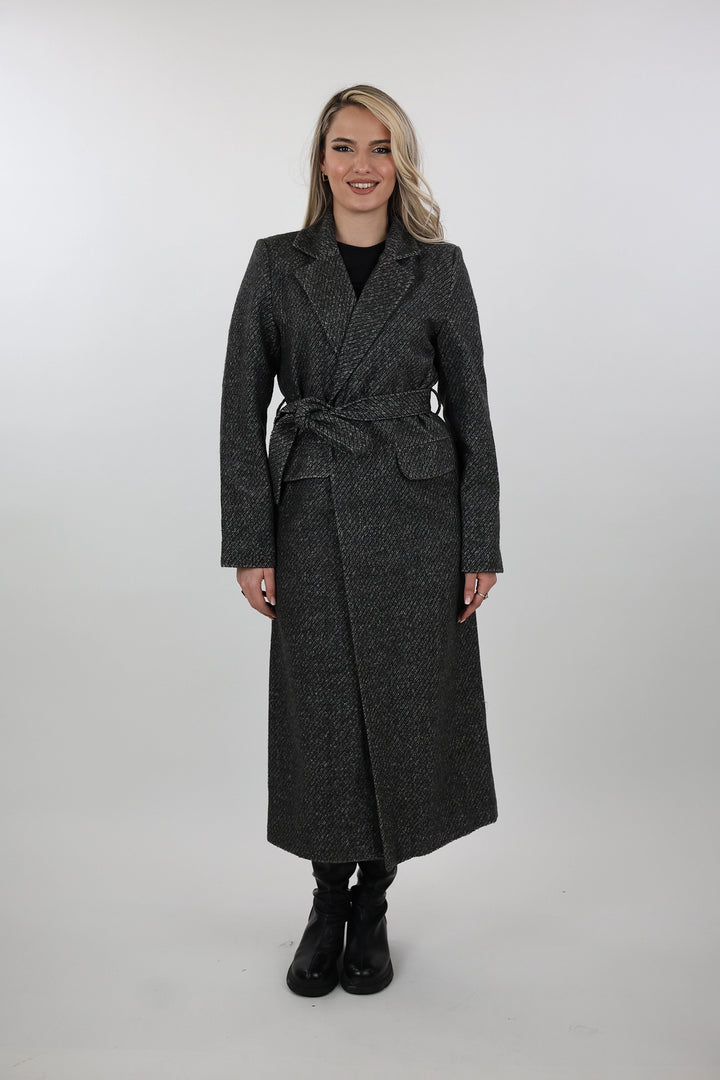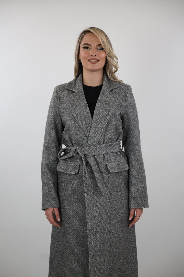 Pallto belted overcoat per femra me dizajn klasik dhe elegant, i pershtatshem per sezonet e ftohta.