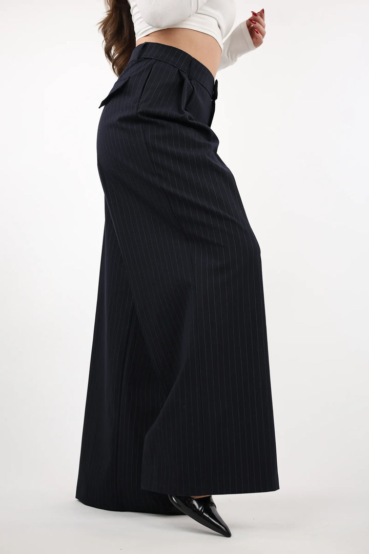 Pantallona me vija te holle pinstripe qe kombinon sofistikimin me komoditetin.