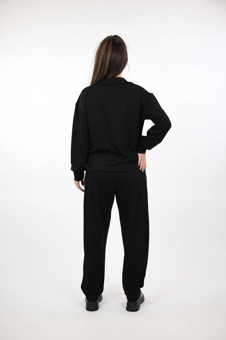 Kompleti Polo Co-ord Set perfshin nje bluze polo dhe pantallona te perputhura, te dizajnuara per nje pamje te koordinuar dhe profesionale.