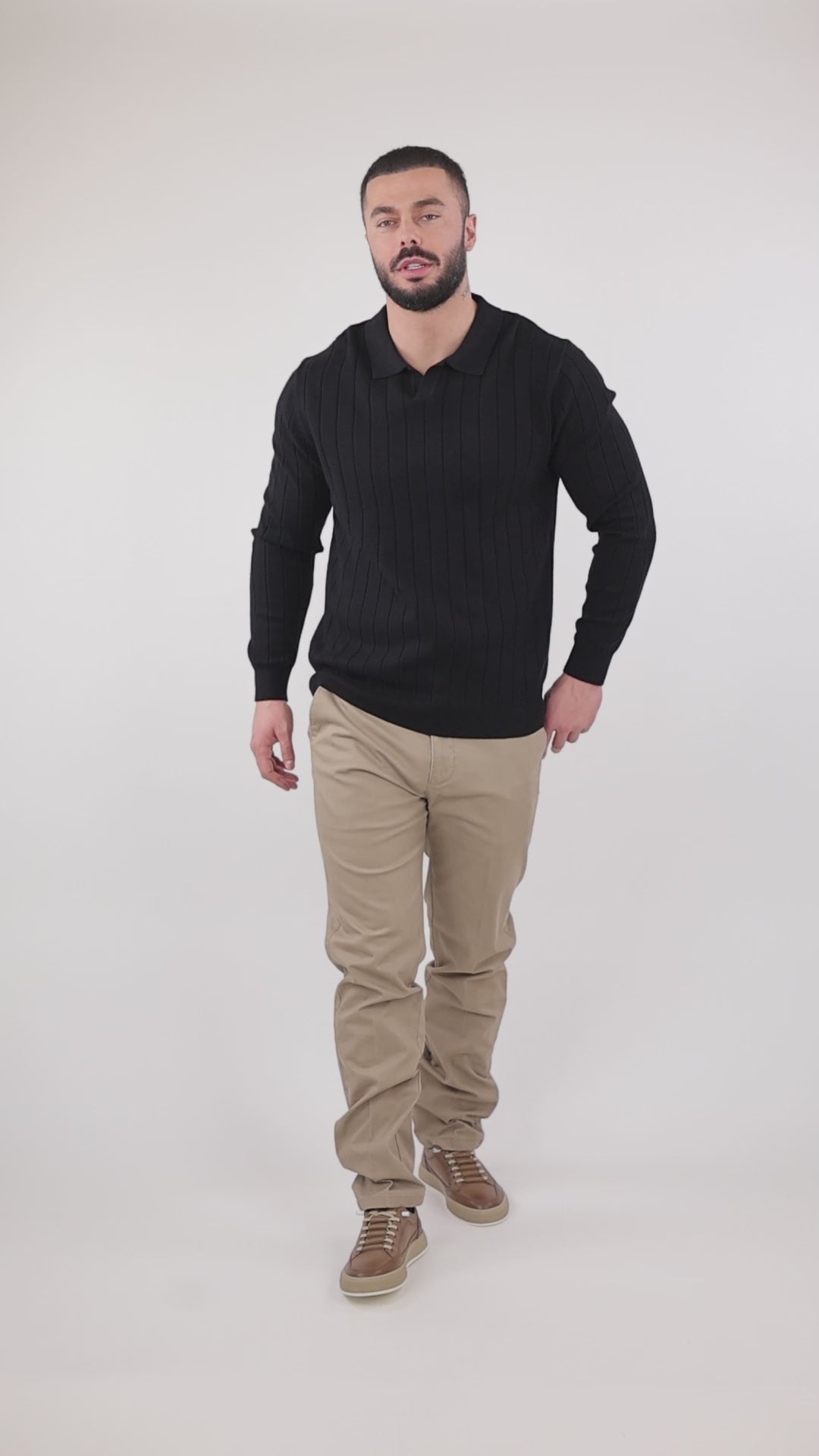 Xhemper textured polo shirt kombinon zanatin e rafinuar me stilin e versatilshem. Pëlhura e saj me teksture te veçante shton thellesi vizuale dhe interes taktil, duke e ngritur ate pertej poloeve standarde.